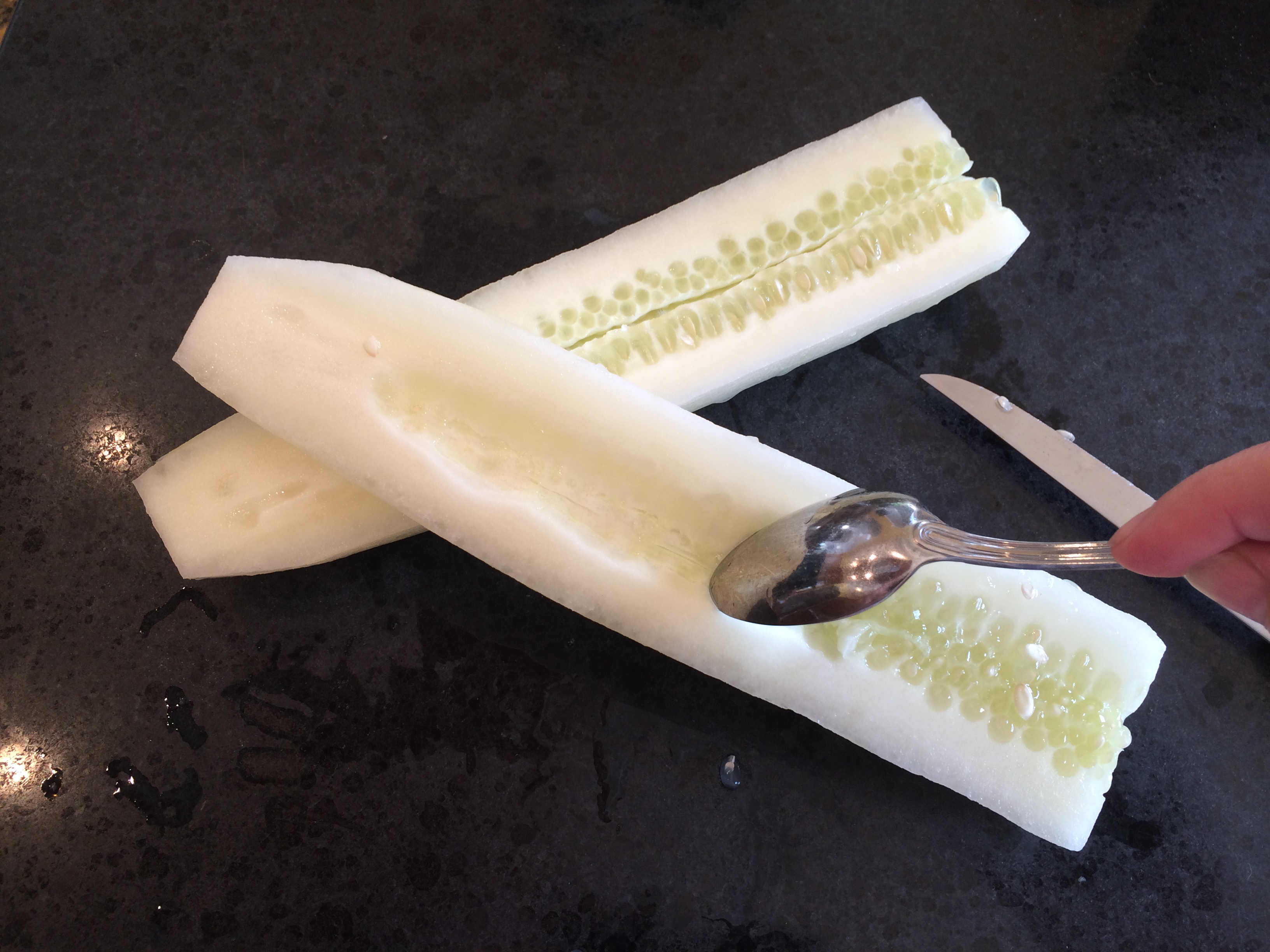 - Peel and remove the seeds from enough oversized yellow cucumbers to make 7 pounds of 1/4 inch sticks in 2-3 inch lengths.
